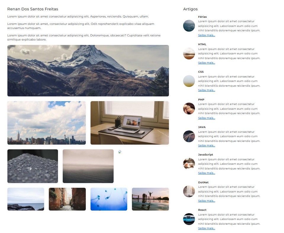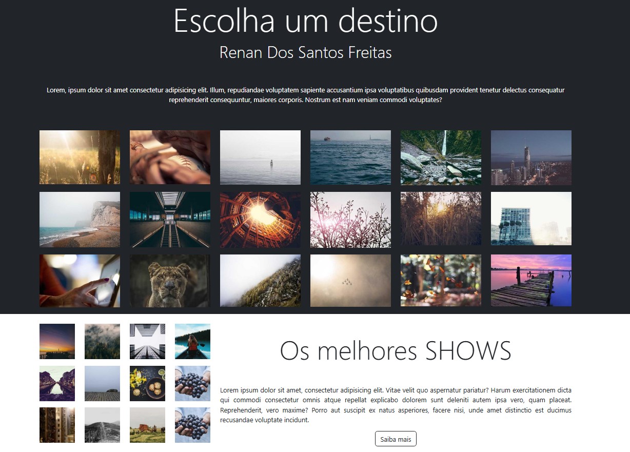 Projetos desenvolvidos com HTML, CSS, JavaScript e Bootstrap, aplicando conceitos de responsividade, animações, componentes reusáveis e boas práticas que garantem performance e estética profissional.